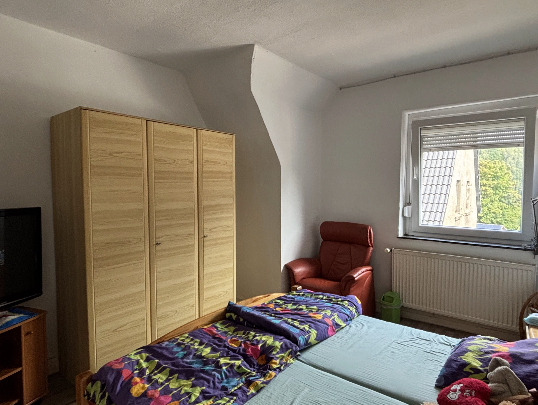 Es handelt sich um eine im Jahr 1912 errichtete Doppelhaushälfte, die ursprünglich von der Firma Hoesch – einst größter Arbeitgeber in Wissen – für ihre Mitarbeiter erbaut wurde. Das Haus liegt in zentrumsnaher und zugleich “grüner” Wohnlage, da zu jeder Einheit ein eigener Garten gehört.
